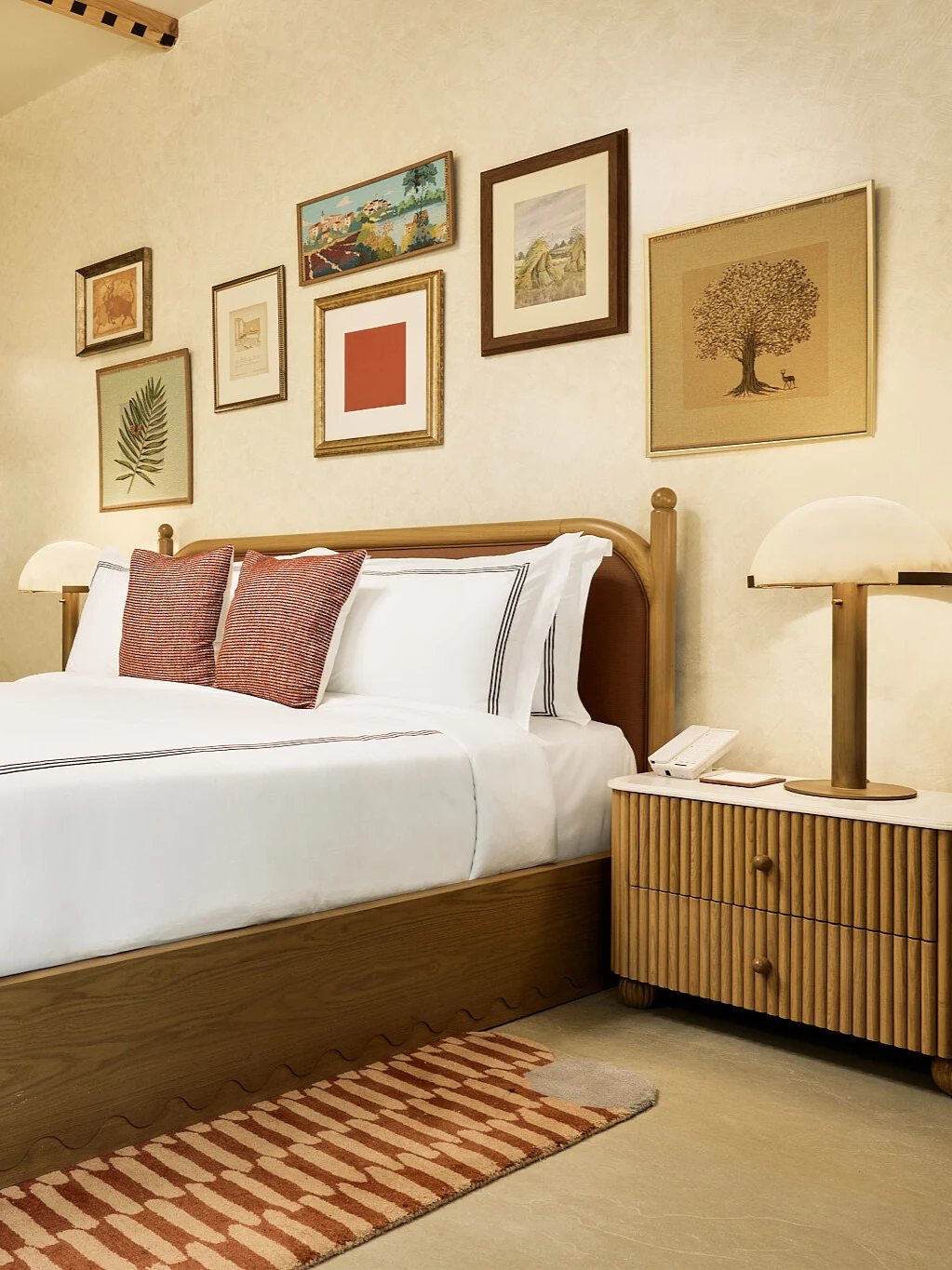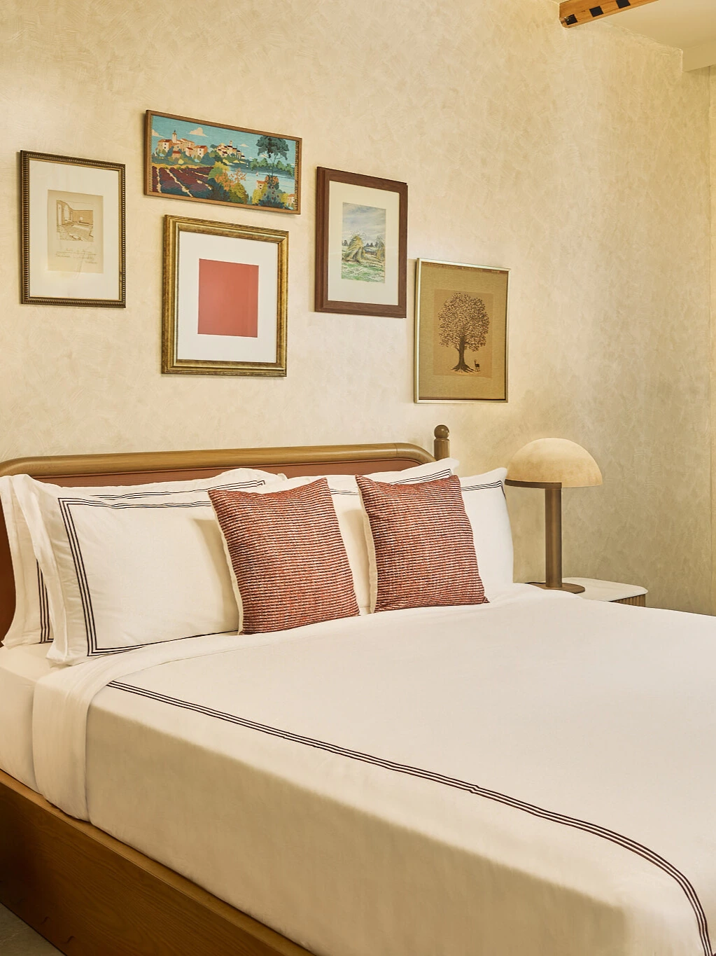 The Gallery Rooms come with all the reserve essentials—and a little more. Burgundy bathtubs invite long pauses, while a collage of art from Les Puces, Paris, brings the world to your wall.