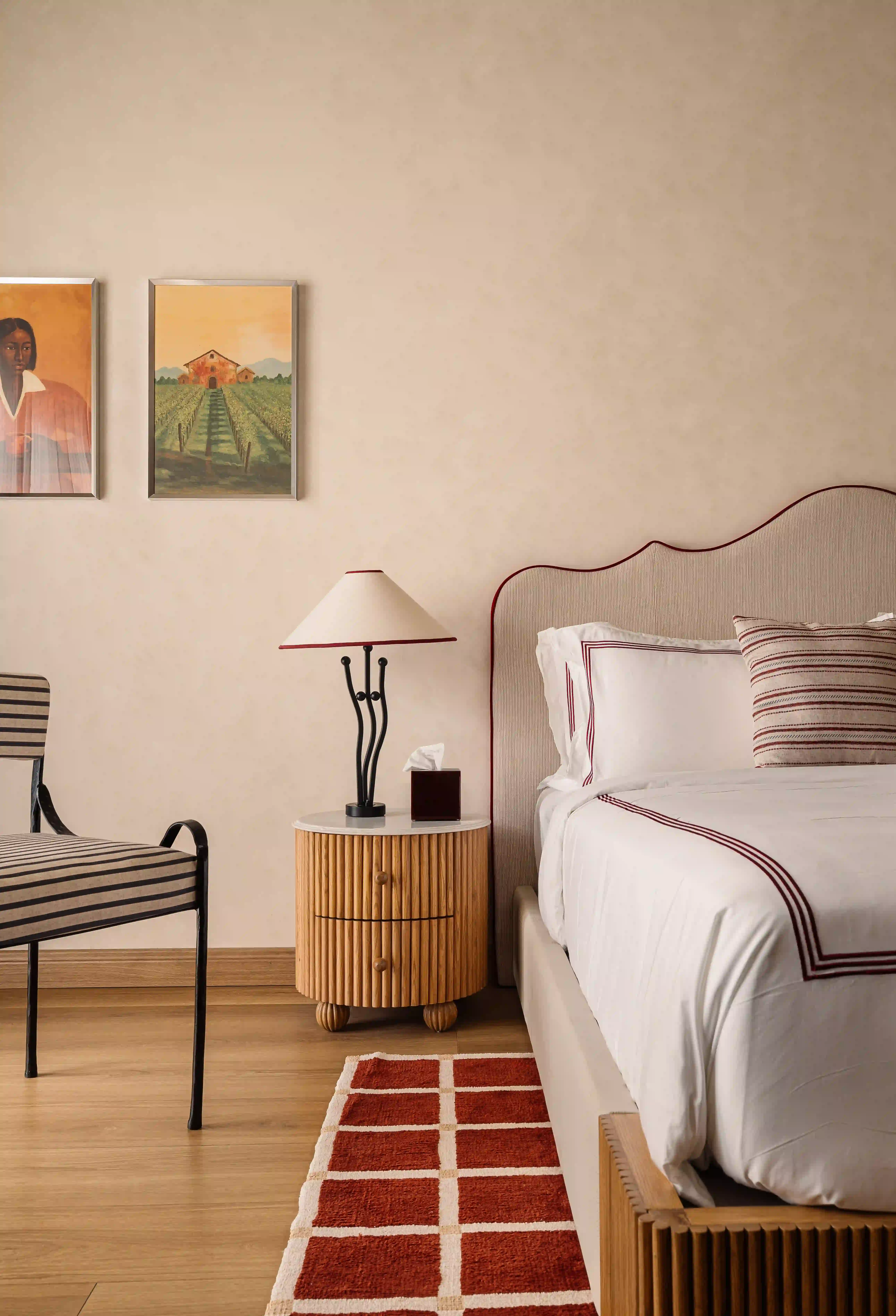 At Irada, no two rooms are alike—but they all feel like the best one. Whether it's a Reserve Room with your morning espresso and courtyard view, a Gallery Room with a Burgundy tub and Parisian finds, or a Vineyard Suite made for wine-soaked evenings—we've left no detail to chance. Prefer to take over the estate? The Collector's Suite is waiting.